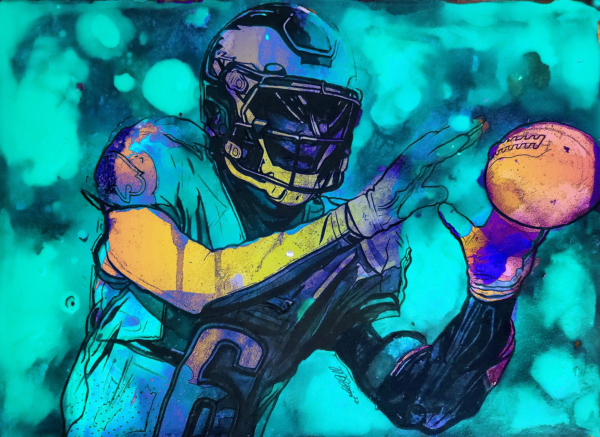 Celebrate the exceptional talent of Eagles superstar Devonta Smith with these finely crafted watercolor prints. Printed on high-quality rag watercolor paper, each piece showcases vibrant colors and intricate brushwork that capture Smith’s agility and dynamic presence on the field. These prints offer a sophisticated tribute for collectors and fans alike, blending artistic excellence with the spirit of one of football’s most exciting players. Perfect for display in any setting, this artwork honors Devonta Smith’s impact and rising legacy within the Philadelphia Eagles organization.
